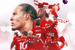 利物浦发布对阵曼城海报:范戴克、萨拉赫、维尔茨、埃基蒂克出镜体育资讯2月8日讯北京时间明天凌晨,利物浦将在英超第25轮比赛中主场对阵曼城。利物浦官方社媒发布了为此役制作的海报,范戴克、萨拉赫、埃基蒂克、麦卡利斯特、维尔茨、加克波、科纳特、索博斯洛伊出镜。利物浦积