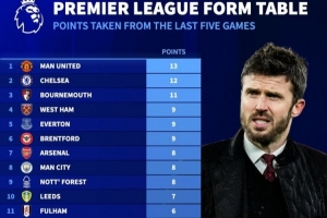 英超近5轮积分榜:曼联13分、切尔西12分,阿森纳、曼城各8分体育资讯2月10日讯曼联在本轮英超2-0力克热刺,延续了近期出色表现。数据统计显示,红魔也是近5轮拿分最多的球队。英超近5轮积分榜:1.曼联,13分2.切尔西,12分3.伯恩茅斯,11分4.西汉姆联,9